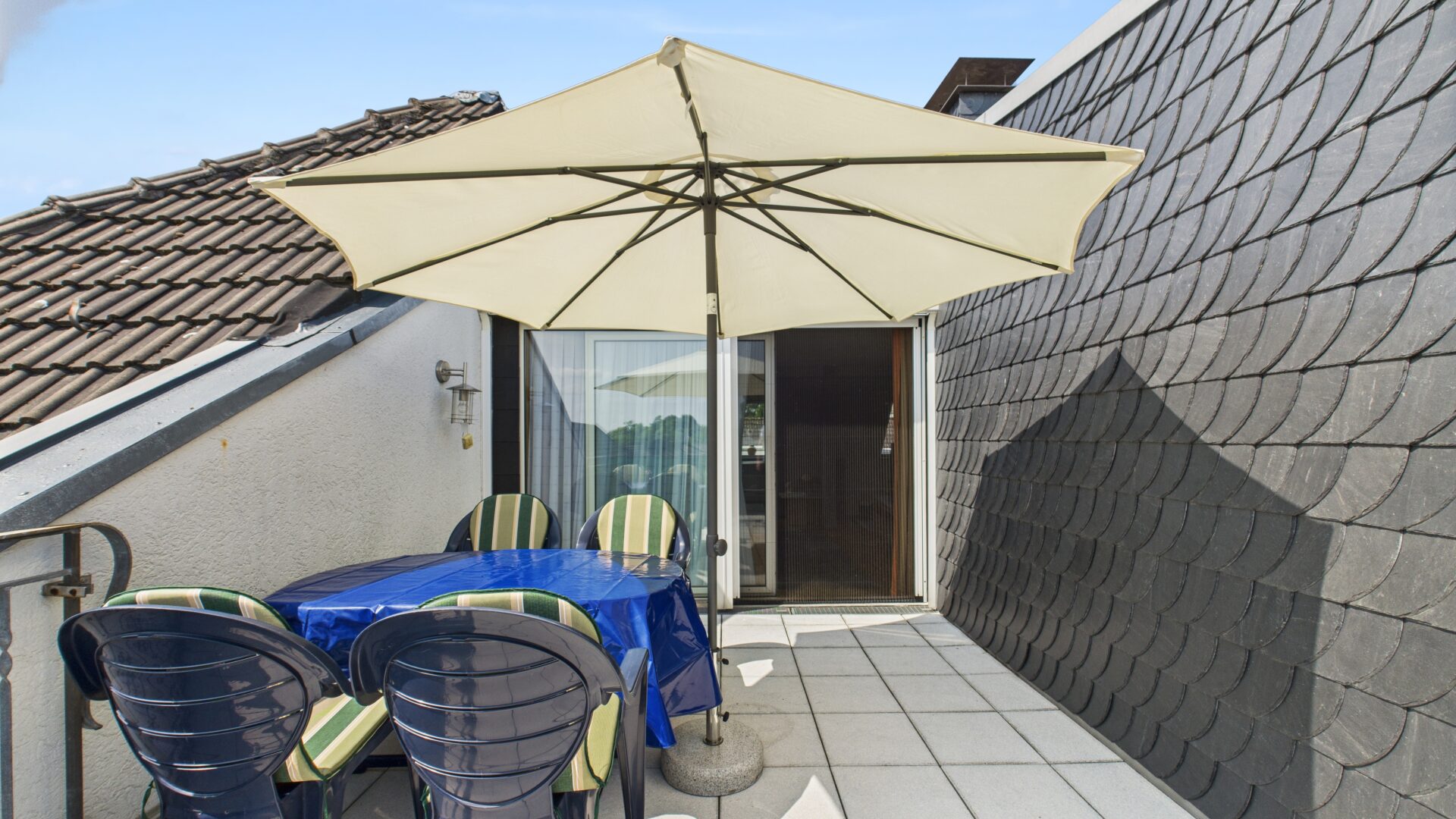 Möchten Sie den Tag mit einem Frühstück im warmen Morgenlicht beginnen oder den Abend entspannt auf der Loggia bei einem Glas Wein ausklingen lassen? Die private Dachterrasse, hoch über den Straßen Holsterhausens, bietet Ihnen einen besonderen Rückzugsort mit Ruhe und Lebensqualität.